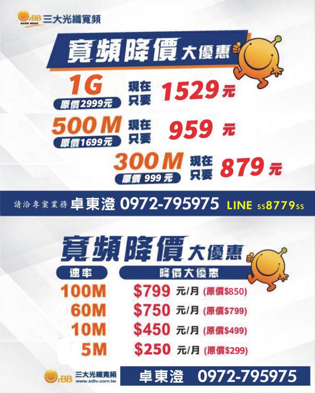 三大光纖寬頻網路促銷優惠.光纖300M 200M 100M 60M 35M 16M 10M免費四重送破盤價送超多全家上網不LAG快來電申裝